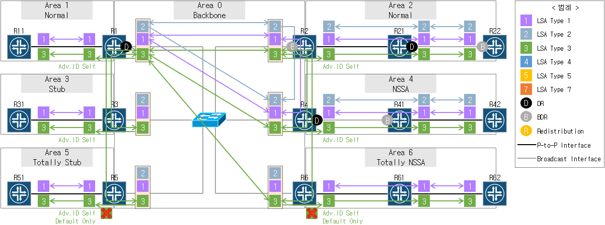 1. OSPF Area Type 별 존재할 수 있는 LSA Type